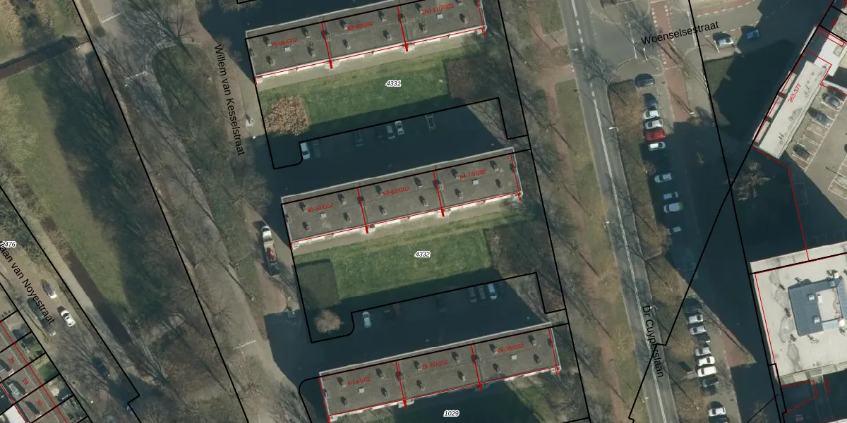 Willem van Kesselstraat 62 is gelegen op kadastraal perceel WSL01L4332. Deze kadastrale aanduiding is uniek en wordt gebruikt door het Kadaster om eigendomsrechten en andere zakelijke rechten vast te leggen. Het perceel maakt onderdeel uit van de kadastrale gemeente Woensel.