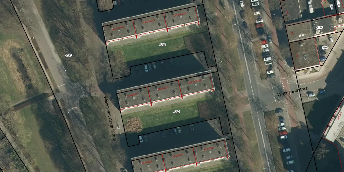 Willem van Kesselstraat 90 is gelegen op kadastraal perceel WSL01L4331. Deze kadastrale aanduiding is uniek en wordt gebruikt door het Kadaster om eigendomsrechten en andere zakelijke rechten vast te leggen. Het perceel maakt onderdeel uit van de kadastrale gemeente Woensel.