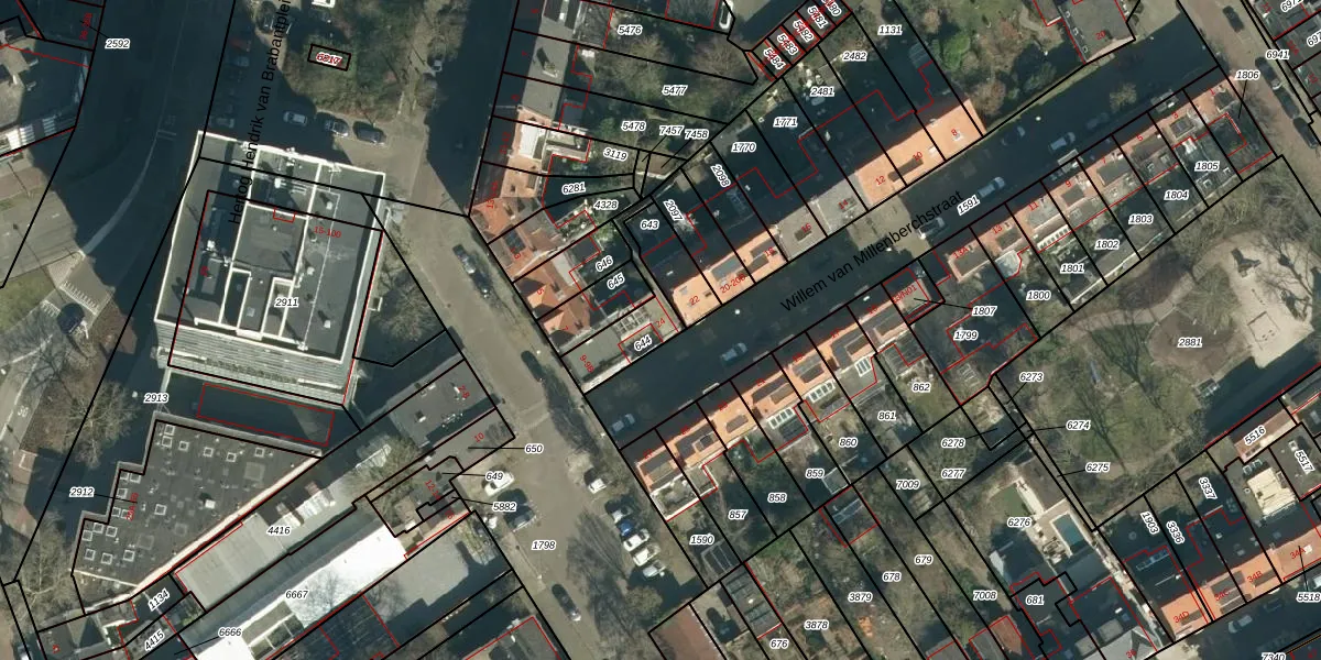 Willem van Millenberchstraat 24 is gelegen op kadastraal perceel STM00E644. Deze kadastrale aanduiding is uniek en wordt gebruikt door het Kadaster om eigendomsrechten en andere zakelijke rechten vast te leggen. Het perceel maakt onderdeel uit van de kadastrale gemeente Stratum.