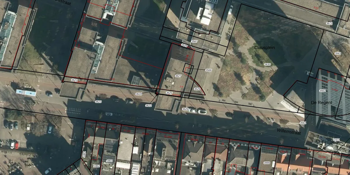 Willemstraat 2 is gelegen op kadastraal perceel EHV00D3627. Deze kadastrale aanduiding is uniek en wordt gebruikt door het Kadaster om eigendomsrechten en andere zakelijke rechten vast te leggen. Het perceel maakt onderdeel uit van de kadastrale gemeente Eindhoven.