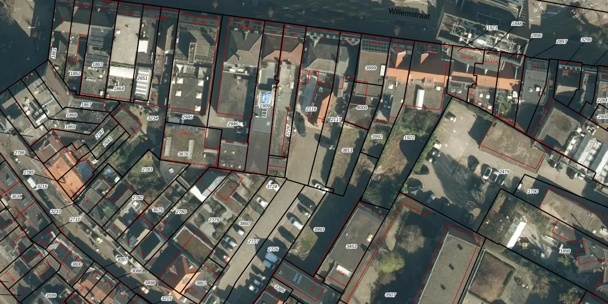Het perceel waarop Willemstraat 23-13 staat heeft een oppervlakte van 524 m². Dit is een groot perceel. De perceeloppervlakte wordt geregistreerd door het Kadaster. Gedetailleerde informatie over de maten van dit perceel kunt u vinden in het rapport Kadastrale kaart met maatvoering van Willemstraat 23-13.