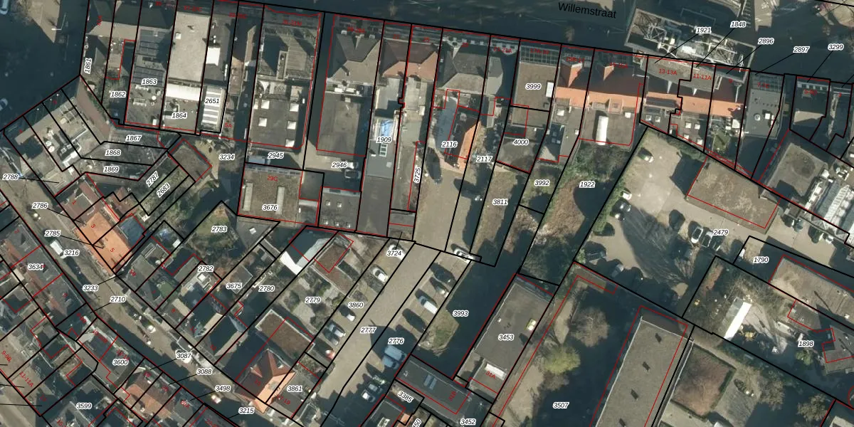 Het perceel waarop Willemstraat 23-31 staat heeft een oppervlakte van 524 m². Dit is een groot perceel. De perceeloppervlakte wordt geregistreerd door het Kadaster. Gedetailleerde informatie over de maten van dit perceel kunt u vinden in het rapport Kadastrale kaart met maatvoering van Willemstraat 23-31.