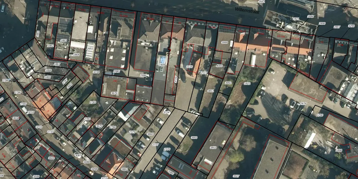 Willemstraat 23-45 is gelegen op kadastraal perceel EHV00D2116. Deze kadastrale aanduiding is uniek en wordt gebruikt door het Kadaster om eigendomsrechten en andere zakelijke rechten vast te leggen. Het perceel maakt onderdeel uit van de kadastrale gemeente Eindhoven.