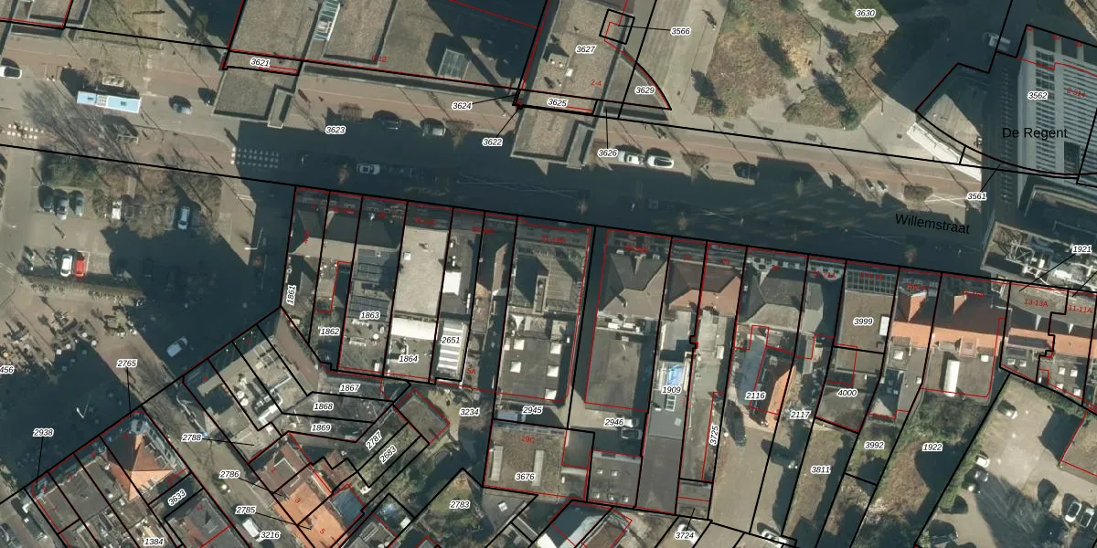 Het perceel waarop Willemstraat 31-D staat heeft een oppervlakte van 518 m². Dit is een groot perceel. De perceeloppervlakte wordt geregistreerd door het Kadaster. Gedetailleerde informatie over de maten van dit perceel kunt u vinden in het rapport Kadastrale kaart met maatvoering van Willemstraat 31-D.