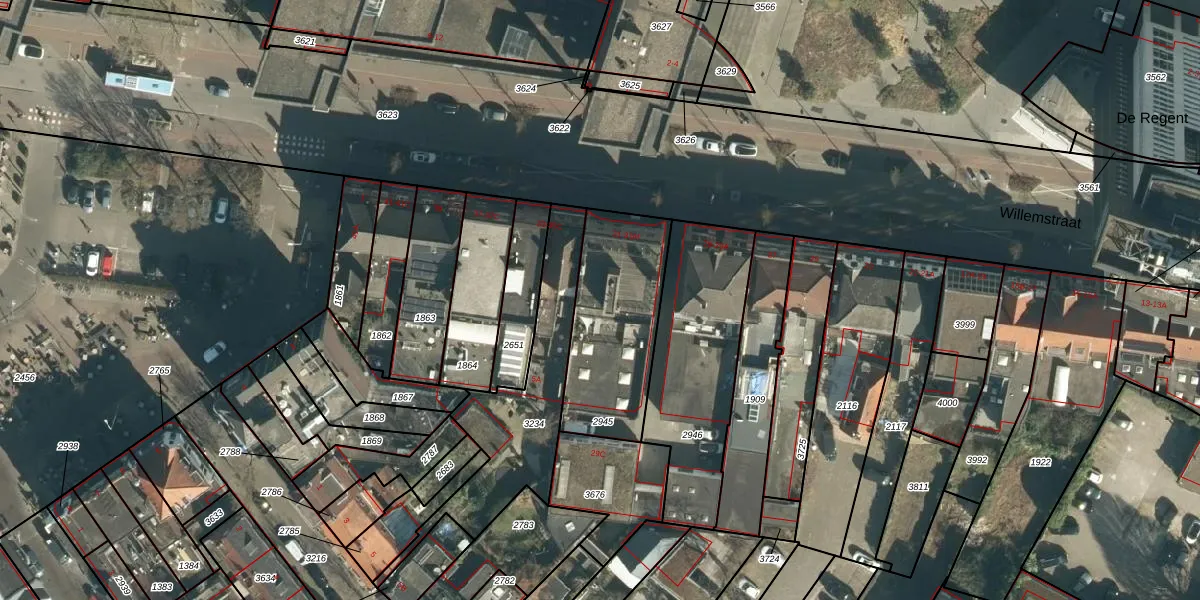 Het perceel waarop Willemstraat 31-L staat heeft een oppervlakte van 518 m². Dit is een groot perceel. De perceeloppervlakte wordt geregistreerd door het Kadaster. Gedetailleerde informatie over de maten van dit perceel kunt u vinden in het rapport Kadastrale kaart met maatvoering van Willemstraat 31-L.