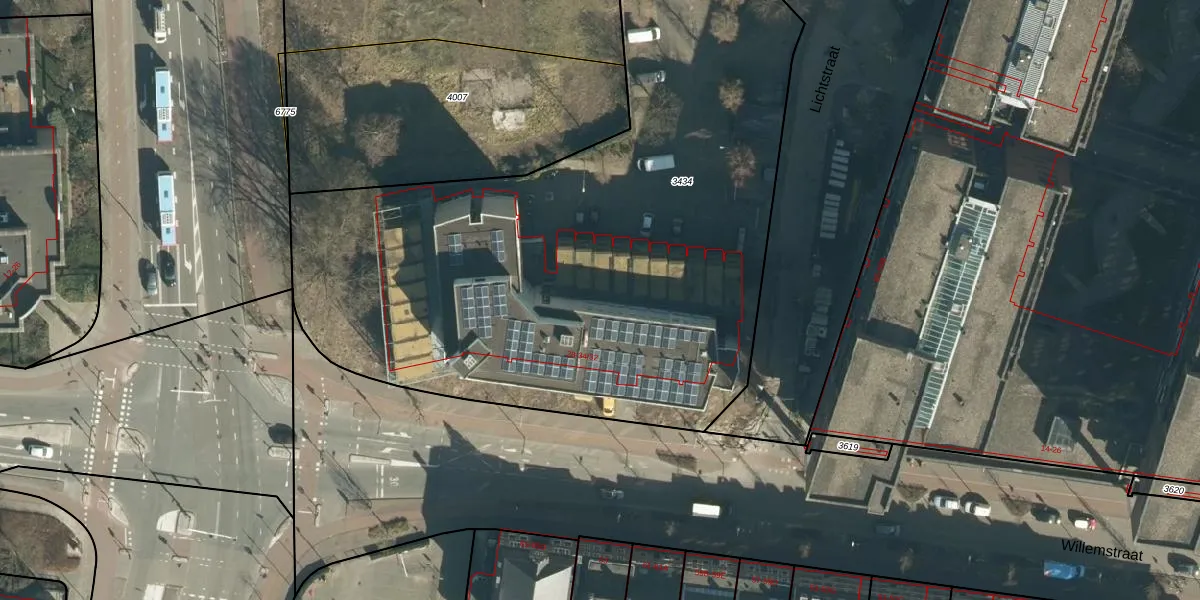 Het perceel waarop Willemstraat 32-26 staat heeft een oppervlakte van 4112 m². Dit is een zeer groot perceel. De perceeloppervlakte wordt geregistreerd door het Kadaster. Gedetailleerde informatie over de maten van dit perceel kunt u vinden in het rapport Kadastrale kaart met maatvoering van Willemstraat 32-26.