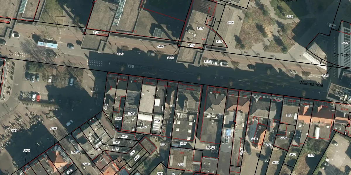 Het perceel waarop Willemstraat 33 staat heeft een oppervlakte van 515 m². Dit is een groot perceel. De perceeloppervlakte wordt geregistreerd door het Kadaster. Gedetailleerde informatie over de maten van dit perceel kunt u vinden in het rapport Kadastrale kaart met maatvoering van Willemstraat 33.