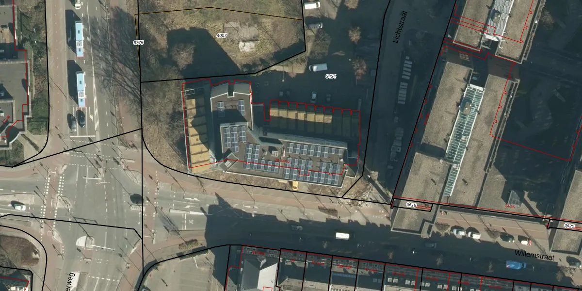 Het perceel waarop Willemstraat 34-14 staat heeft een oppervlakte van 4112 m². Dit is een zeer groot perceel. De perceeloppervlakte wordt geregistreerd door het Kadaster. Gedetailleerde informatie over de maten van dit perceel kunt u vinden in het rapport Kadastrale kaart met maatvoering van Willemstraat 34-14.