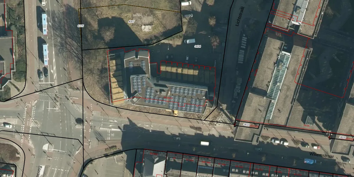 Het perceel waarop Willemstraat 34-16 staat heeft een oppervlakte van 4112 m². Dit is een zeer groot perceel. De perceeloppervlakte wordt geregistreerd door het Kadaster. Gedetailleerde informatie over de maten van dit perceel kunt u vinden in het rapport Kadastrale kaart met maatvoering van Willemstraat 34-16.