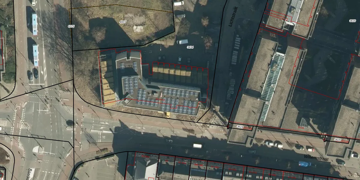 Het perceel waarop Willemstraat 34-22 staat heeft een oppervlakte van 4112 m². Dit is een zeer groot perceel. De perceeloppervlakte wordt geregistreerd door het Kadaster. Gedetailleerde informatie over de maten van dit perceel kunt u vinden in het rapport Kadastrale kaart met maatvoering van Willemstraat 34-22.