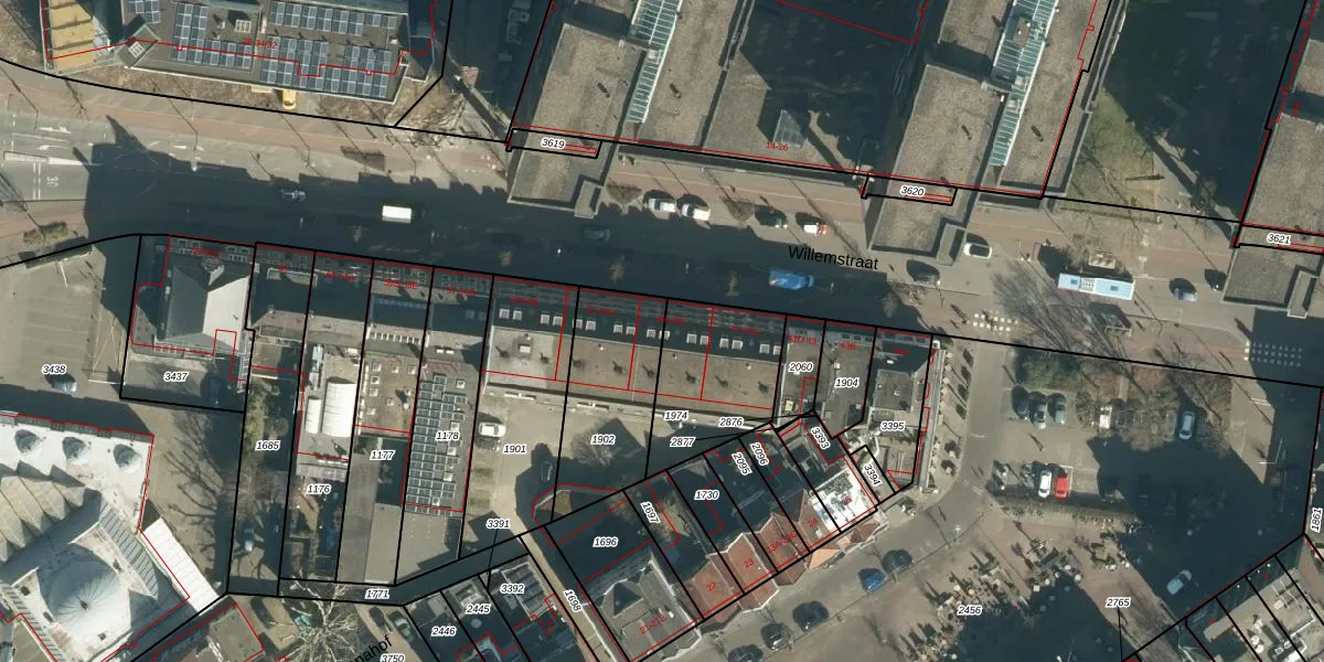 Het perceel waarop Willemstraat 49-C staat heeft een oppervlakte van 425 m². Dit is een groot perceel. De perceeloppervlakte wordt geregistreerd door het Kadaster. Gedetailleerde informatie over de maten van dit perceel kunt u vinden in het rapport Kadastrale kaart met maatvoering van Willemstraat 49-C.