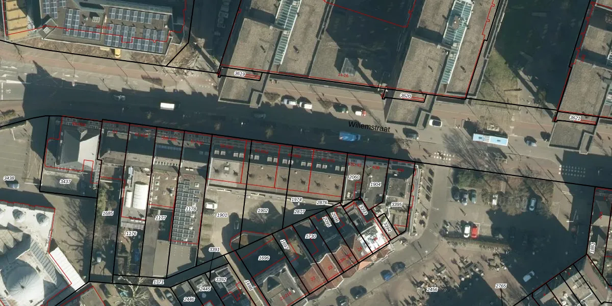 Het perceel waarop Willemstraat 49 staat heeft een oppervlakte van 392 m². Dit is een groot perceel. De perceeloppervlakte wordt geregistreerd door het Kadaster. Gedetailleerde informatie over de maten van dit perceel kunt u vinden in het rapport Kadastrale kaart met maatvoering van Willemstraat 49.
