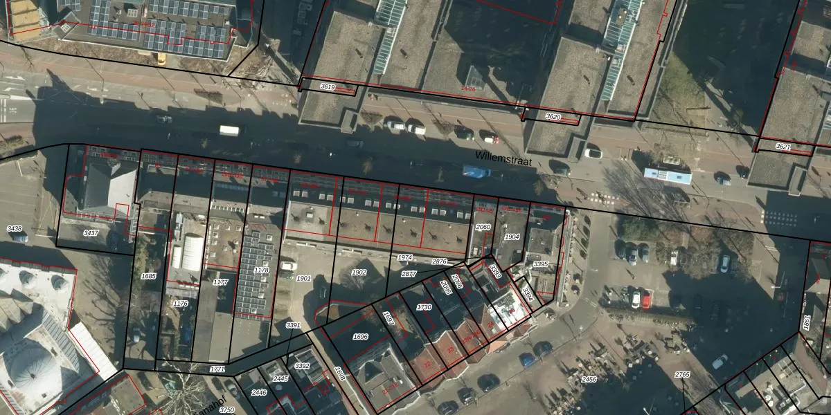 Het perceel waarop Willemstraat 49-B staat heeft een oppervlakte van 392 m². Dit is een groot perceel. De perceeloppervlakte wordt geregistreerd door het Kadaster. Gedetailleerde informatie over de maten van dit perceel kunt u vinden in het rapport Kadastrale kaart met maatvoering van Willemstraat 49-B.