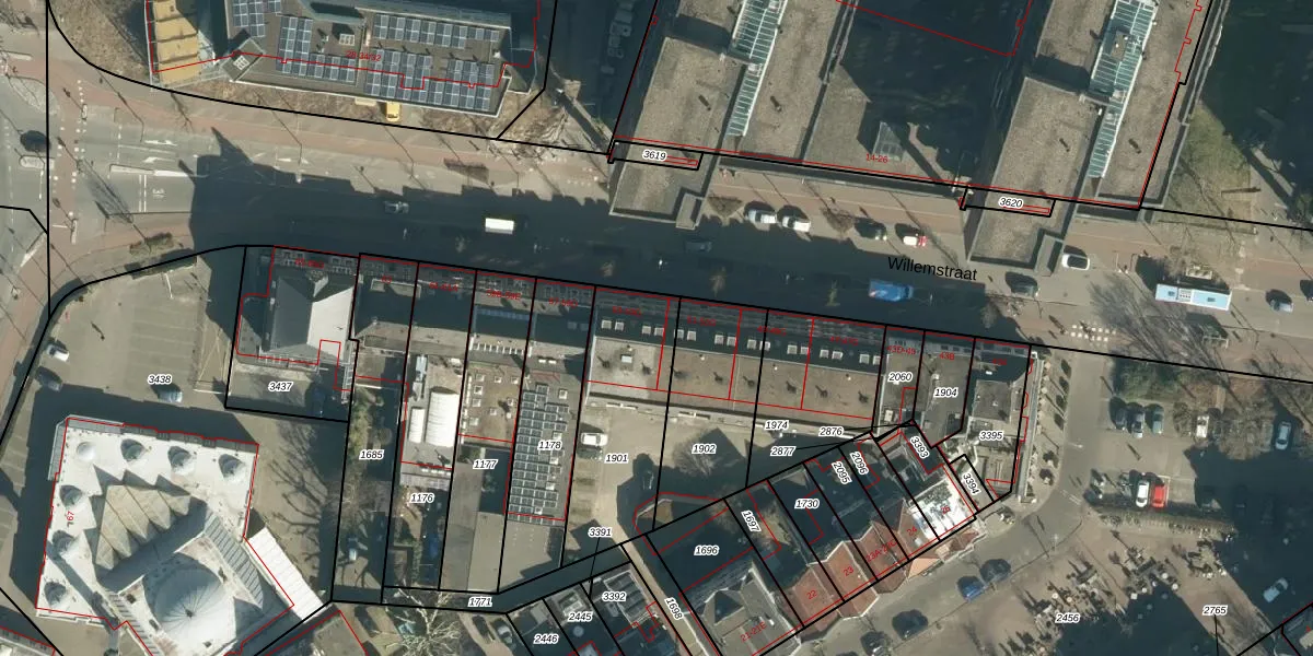 Het perceel waarop Willemstraat 53-B staat heeft een oppervlakte van 535 m². Dit is een groot perceel. De perceeloppervlakte wordt geregistreerd door het Kadaster. Gedetailleerde informatie over de maten van dit perceel kunt u vinden in het rapport Kadastrale kaart met maatvoering van Willemstraat 53-B.