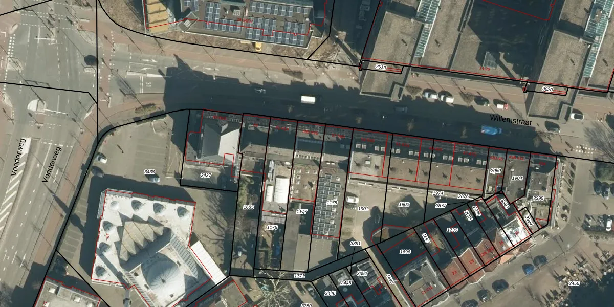 Het perceel waarop Willemstraat 59-E staat heeft een oppervlakte van 442 m². Dit is een groot perceel. De perceeloppervlakte wordt geregistreerd door het Kadaster. Gedetailleerde informatie over de maten van dit perceel kunt u vinden in het rapport Kadastrale kaart met maatvoering van Willemstraat 59-E.