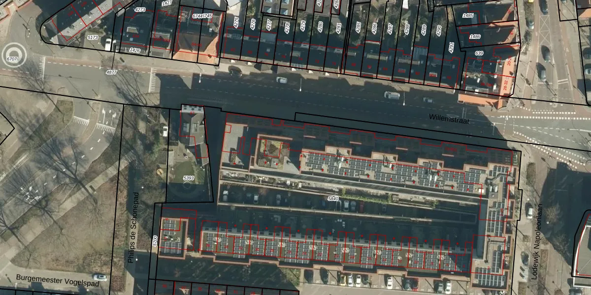 Het perceel waarop Willemstraat 85-A staat heeft een oppervlakte van 6675 m². Dit is een zeer groot perceel. De perceeloppervlakte wordt geregistreerd door het Kadaster. Gedetailleerde informatie over de maten van dit perceel kunt u vinden in het rapport Kadastrale kaart met maatvoering van Willemstraat 85-A.