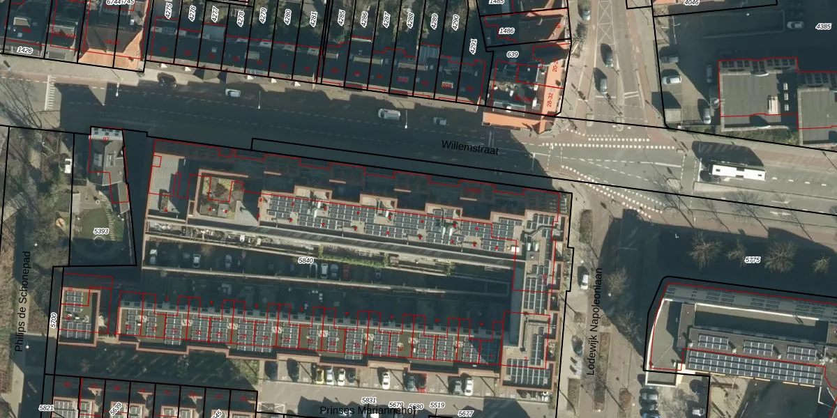 Het perceel waarop Willemstraat 87-A staat heeft een oppervlakte van 6675 m². Dit is een zeer groot perceel. De perceeloppervlakte wordt geregistreerd door het Kadaster. Gedetailleerde informatie over de maten van dit perceel kunt u vinden in het rapport Kadastrale kaart met maatvoering van Willemstraat 87-A.
