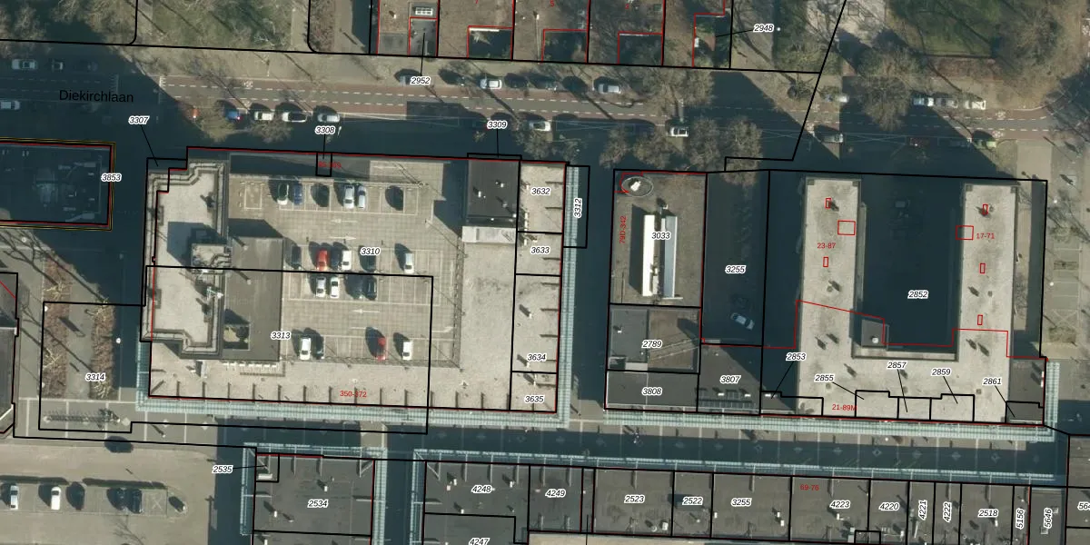 Het perceel waarop Winkelcentrum Woensel 356 staat heeft een oppervlakte van 66 m². Dit is een klein perceel. De perceeloppervlakte wordt geregistreerd door het Kadaster. Gedetailleerde informatie over de maten van dit perceel kunt u vinden in het rapport Kadastrale kaart met maatvoering van Winkelcentrum Woensel 356.