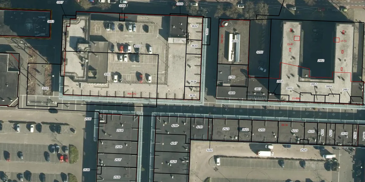 Het perceel waarop Winkelcentrum Woensel 360 staat heeft een oppervlakte van 1777 m². Dit is een zeer groot perceel. De perceeloppervlakte wordt geregistreerd door het Kadaster. Gedetailleerde informatie over de maten van dit perceel kunt u vinden in het rapport Kadastrale kaart met maatvoering van Winkelcentrum Woensel 360.