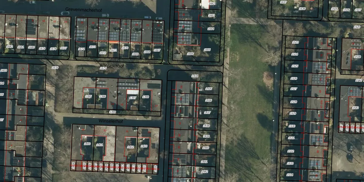 Het perceel waarop Winselerhof 58 staat heeft een oppervlakte van 174 m². Dit is een middelgroot perceel. De perceeloppervlakte wordt geregistreerd door het Kadaster. Gedetailleerde informatie over de maten van dit perceel kunt u vinden in het rapport Kadastrale kaart met maatvoering van Winselerhof 58.