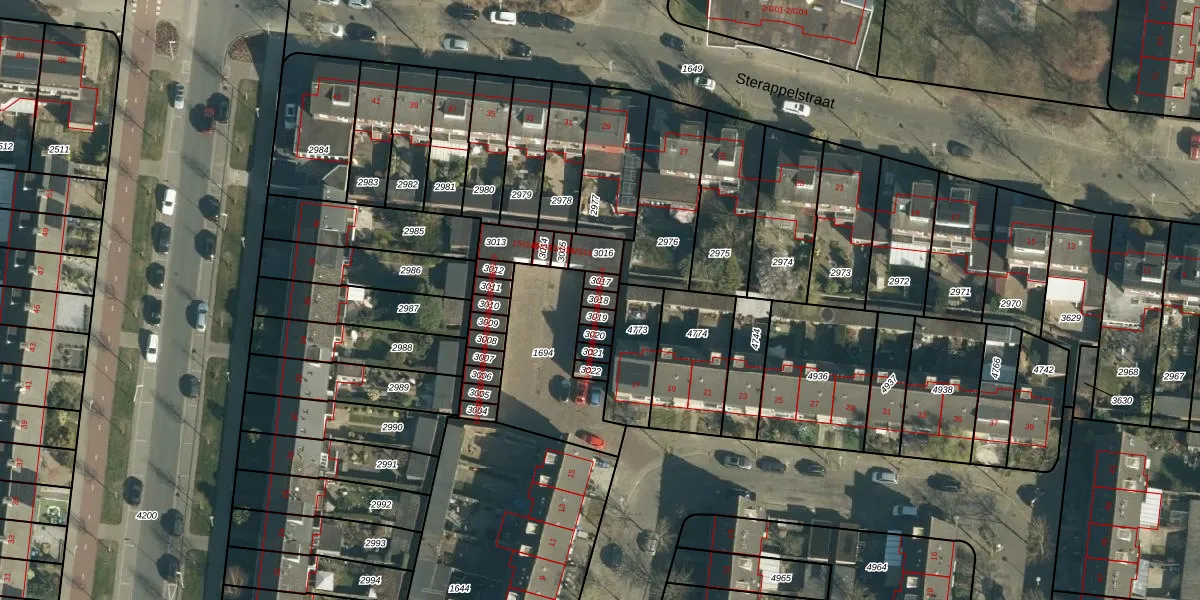 Gebruik de zoekbalk of klik op een perceel voor informatie over de adressen binnen dit perceel.