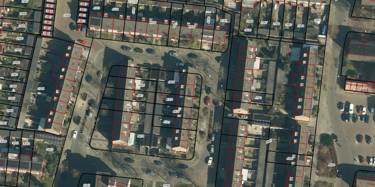 Winterjanstraat 18 is gelegen op kadastraal perceel WSL01C4964. Deze kadastrale aanduiding is uniek en wordt gebruikt door het Kadaster om eigendomsrechten en andere zakelijke rechten vast te leggen. Het perceel maakt onderdeel uit van de kadastrale gemeente Woensel.