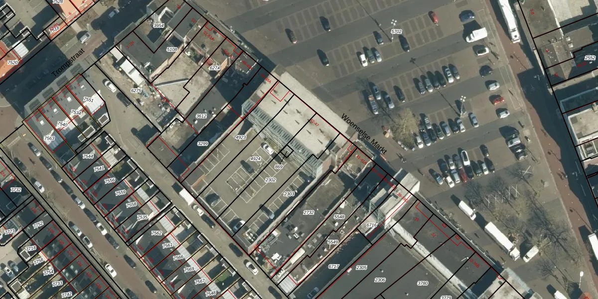 Woenselse Markt 42-B is gelegen op kadastraal perceel WSL01G2302. Deze kadastrale aanduiding is uniek en wordt gebruikt door het Kadaster om eigendomsrechten en andere zakelijke rechten vast te leggen. Het perceel maakt onderdeel uit van de kadastrale gemeente Woensel.