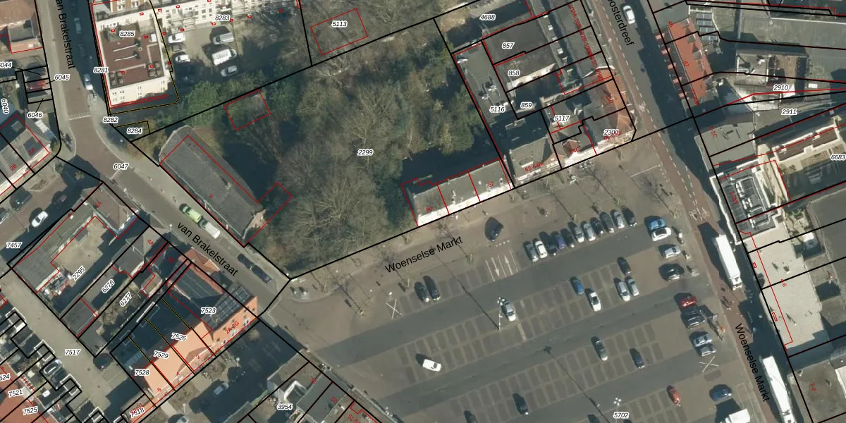Woenselse Markt 61 is gelegen op kadastraal perceel WSL01G2299. Deze kadastrale aanduiding is uniek en wordt gebruikt door het Kadaster om eigendomsrechten en andere zakelijke rechten vast te leggen. Het perceel maakt onderdeel uit van de kadastrale gemeente Woensel.