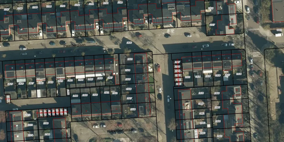 Gebruik de zoekbalk of klik op een perceel voor informatie over de adressen binnen dit perceel.