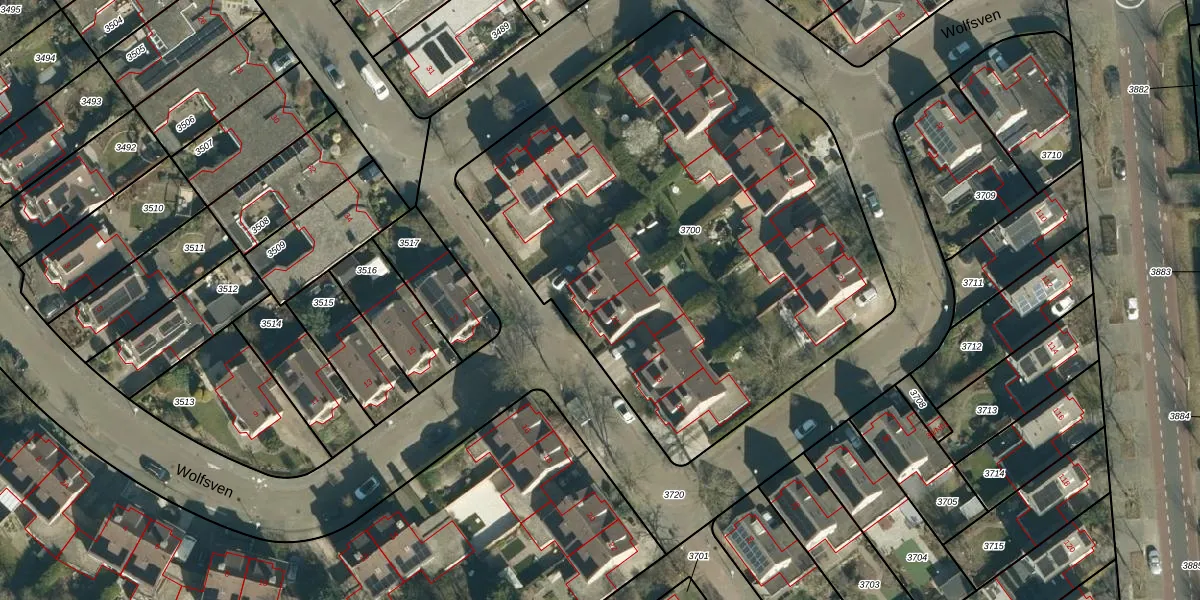 Het perceel waarop Wolfsven 19 staat heeft een oppervlakte van 3149 m². Dit is een zeer groot perceel. De perceeloppervlakte wordt geregistreerd door het Kadaster. Gedetailleerde informatie over de maten van dit perceel kunt u vinden in het rapport Kadastrale kaart met maatvoering van Wolfsven 19.