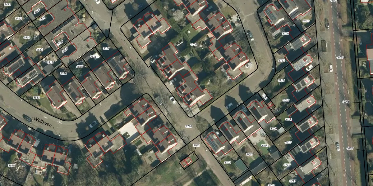Het perceel waarop Wolfsven 23 staat heeft een oppervlakte van 3149 m². Dit is een zeer groot perceel. De perceeloppervlakte wordt geregistreerd door het Kadaster. Gedetailleerde informatie over de maten van dit perceel kunt u vinden in het rapport Kadastrale kaart met maatvoering van Wolfsven 23.