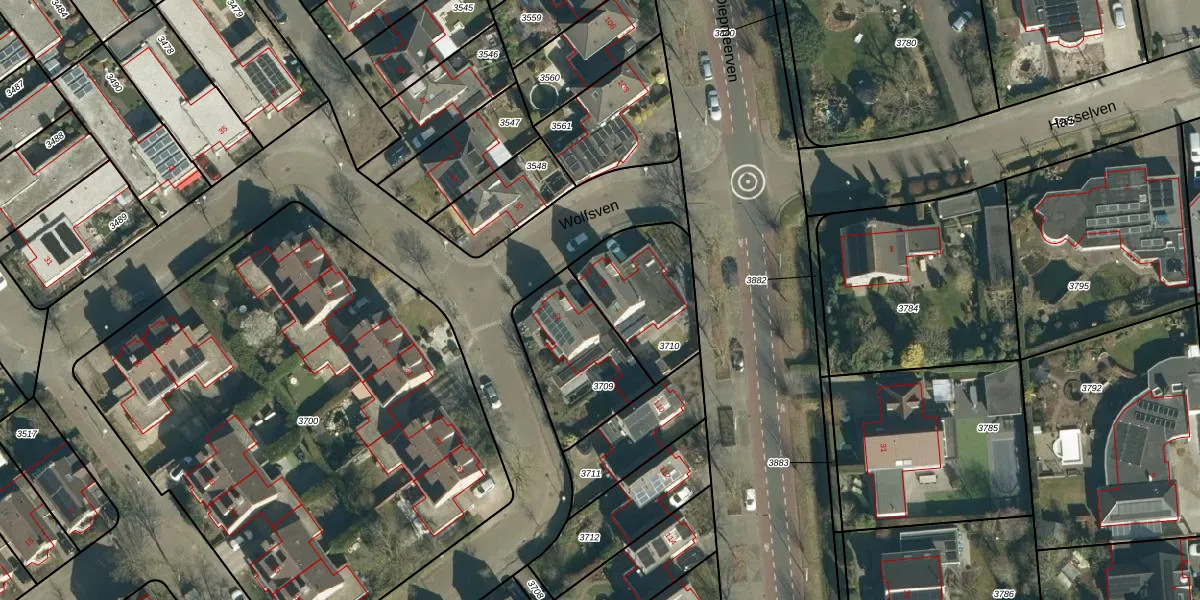 Gebruik de zoekbalk of klik op een perceel voor informatie over de adressen binnen dit perceel.