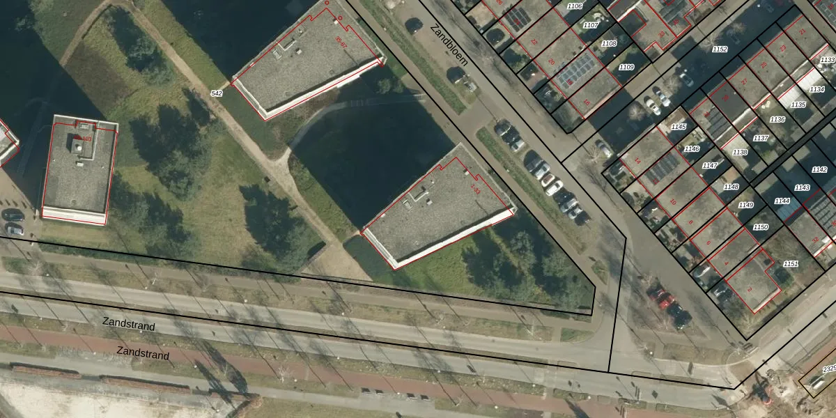 Het perceel waarop Zandbloem 11 staat heeft een oppervlakte van 1,1 ha. Dit is een zeer groot perceel. De perceeloppervlakte wordt geregistreerd door het Kadaster. Gedetailleerde informatie over de maten van dit perceel kunt u vinden in het rapport Kadastrale kaart met maatvoering van Zandbloem 11.