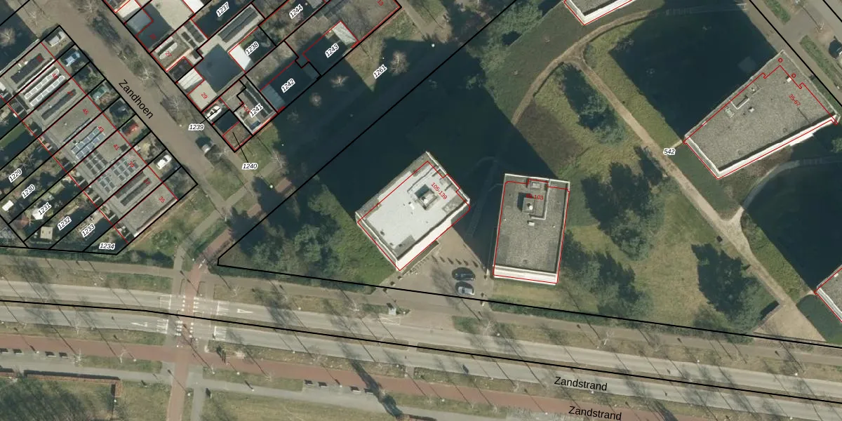 Het perceel waarop Zandbloem 121 staat heeft een oppervlakte van 1,1 ha. Dit is een zeer groot perceel. De perceeloppervlakte wordt geregistreerd door het Kadaster. Gedetailleerde informatie over de maten van dit perceel kunt u vinden in het rapport Kadastrale kaart met maatvoering van Zandbloem 121.
