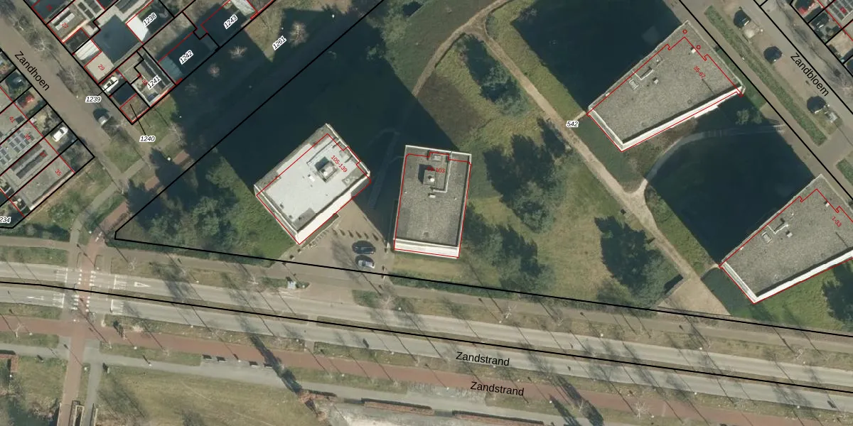 Het perceel waarop Zandbloem 87 staat heeft een oppervlakte van 1,1 ha. Dit is een zeer groot perceel. De perceeloppervlakte wordt geregistreerd door het Kadaster. Gedetailleerde informatie over de maten van dit perceel kunt u vinden in het rapport Kadastrale kaart met maatvoering van Zandbloem 87.