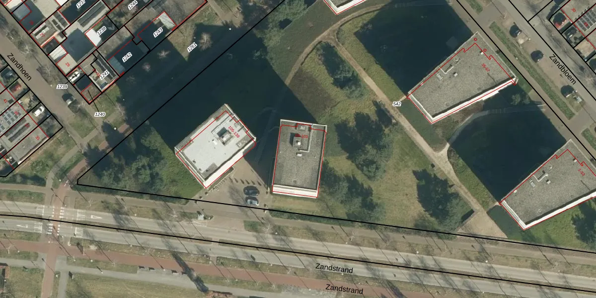Het perceel waarop Zandbloem 91 staat heeft een oppervlakte van 1,1 ha. Dit is een zeer groot perceel. De perceeloppervlakte wordt geregistreerd door het Kadaster. Gedetailleerde informatie over de maten van dit perceel kunt u vinden in het rapport Kadastrale kaart met maatvoering van Zandbloem 91.