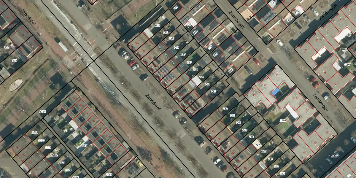 Zanddreef 108 is gelegen op kadastraal perceel STR03F738. Deze kadastrale aanduiding is uniek en wordt gebruikt door het Kadaster om eigendomsrechten en andere zakelijke rechten vast te leggen. Het perceel maakt onderdeel uit van de kadastrale gemeente Strijp.