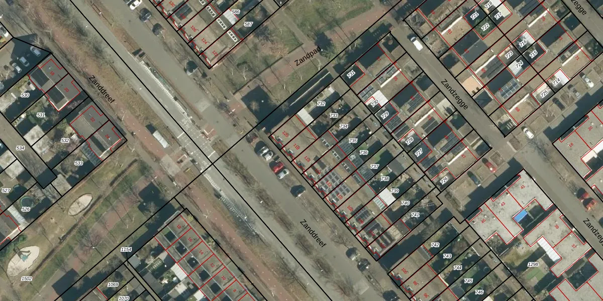 Zanddreef 118 is gelegen op kadastraal perceel STR03F733. Deze kadastrale aanduiding is uniek en wordt gebruikt door het Kadaster om eigendomsrechten en andere zakelijke rechten vast te leggen. Het perceel maakt onderdeel uit van de kadastrale gemeente Strijp.