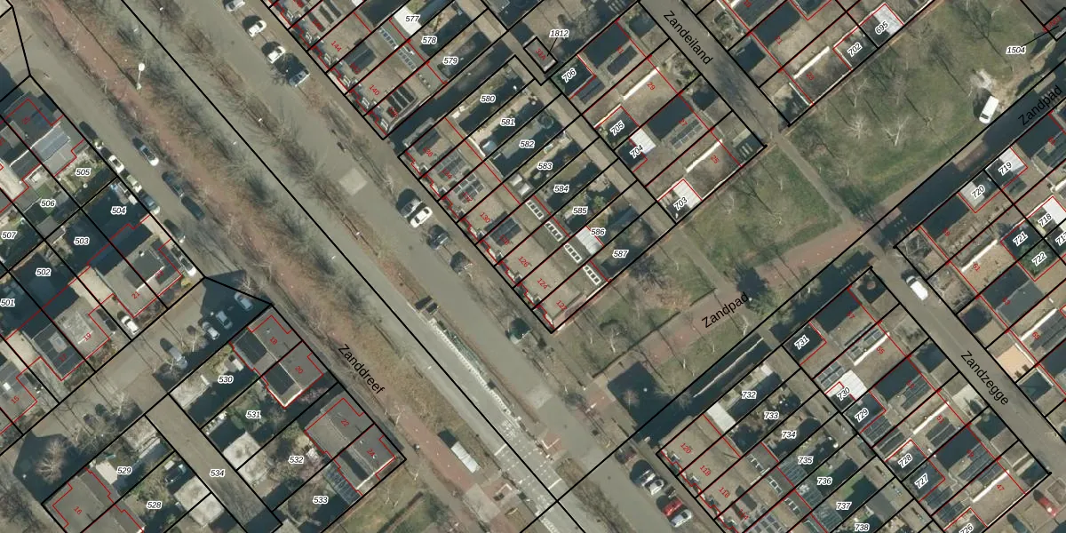 Zanddreef 126 is gelegen op kadastraal perceel STR03F585. Deze kadastrale aanduiding is uniek en wordt gebruikt door het Kadaster om eigendomsrechten en andere zakelijke rechten vast te leggen. Het perceel maakt onderdeel uit van de kadastrale gemeente Strijp.