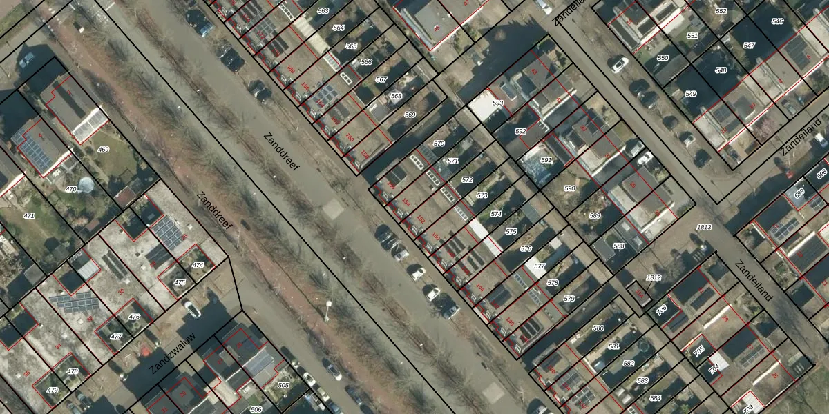 Gebruik de zoekbalk of klik op een perceel voor informatie over de adressen binnen dit perceel.