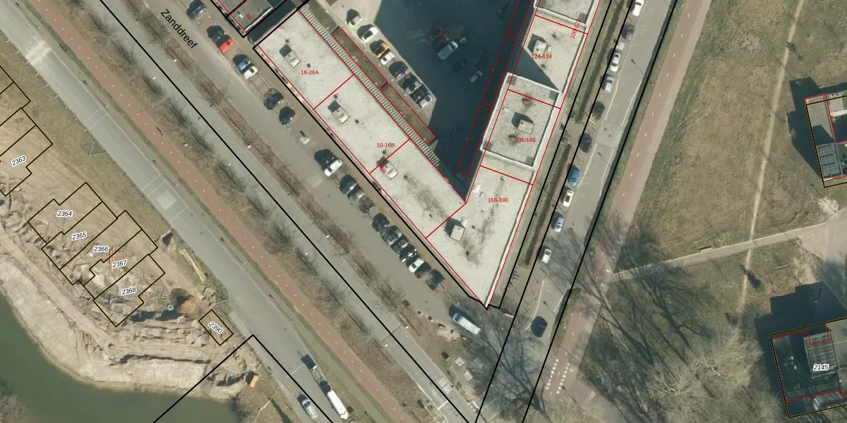 Zanddreef 2 is gelegen op kadastraal perceel STR03F1424. Deze kadastrale aanduiding is uniek en wordt gebruikt door het Kadaster om eigendomsrechten en andere zakelijke rechten vast te leggen. Het perceel maakt onderdeel uit van de kadastrale gemeente Strijp.