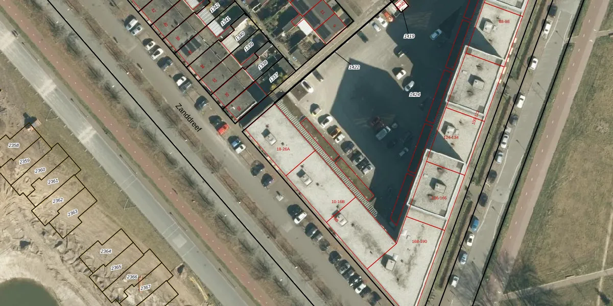 Zanddreef 22 is gelegen op kadastraal perceel STR03F1424. Deze kadastrale aanduiding is uniek en wordt gebruikt door het Kadaster om eigendomsrechten en andere zakelijke rechten vast te leggen. Het perceel maakt onderdeel uit van de kadastrale gemeente Strijp.