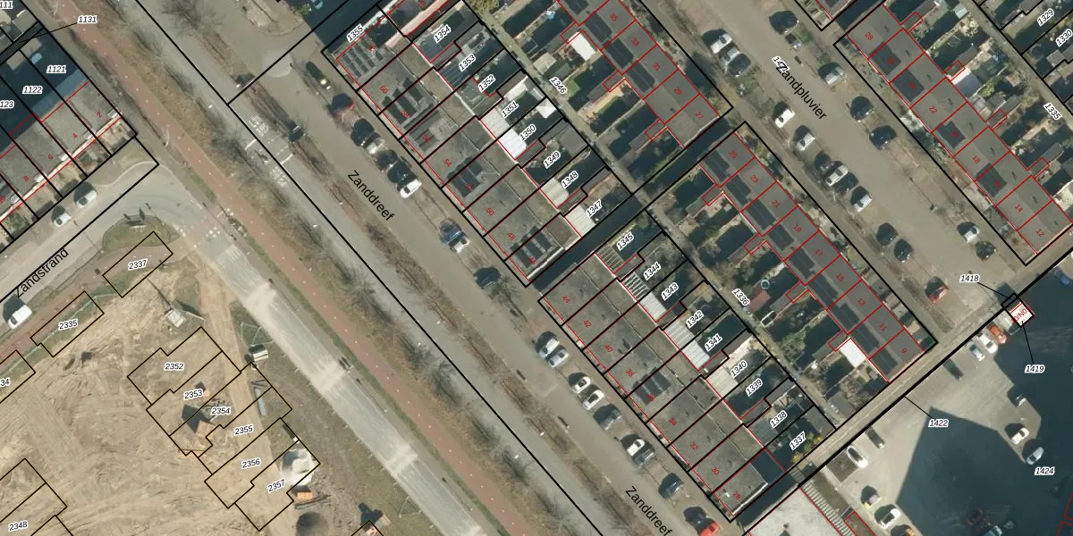 Het perceel waarop Zanddreef 46 staat heeft een oppervlakte van 165 m². Dit is een middelgroot perceel. De perceeloppervlakte wordt geregistreerd door het Kadaster. Gedetailleerde informatie over de maten van dit perceel kunt u vinden in het rapport Kadastrale kaart met maatvoering van Zanddreef 46.