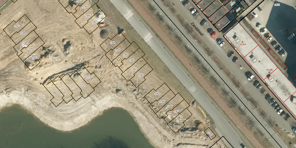 Het perceel waarop Zanddreef 9 staat heeft een oppervlakte van 16,0 ha. Dit is een zeer groot perceel. De perceeloppervlakte wordt geregistreerd door het Kadaster. Gedetailleerde informatie over de maten van dit perceel kunt u vinden in het rapport Kadastrale kaart met maatvoering van Zanddreef 9.