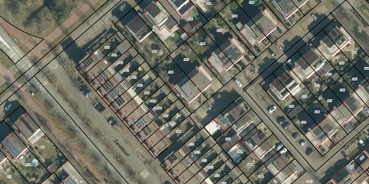 Het perceel waarop Zandeiland 45 staat heeft een oppervlakte van 371 m². Dit is een groot perceel. De perceeloppervlakte wordt geregistreerd door het Kadaster. Gedetailleerde informatie over de maten van dit perceel kunt u vinden in het rapport Kadastrale kaart met maatvoering van Zandeiland 45.