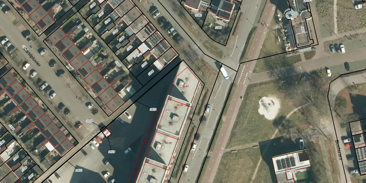 Het perceel waarop Zandkasteel 58 staat heeft een oppervlakte van 6418 m². Dit is een zeer groot perceel. De perceeloppervlakte wordt geregistreerd door het Kadaster. Gedetailleerde informatie over de maten van dit perceel kunt u vinden in het rapport Kadastrale kaart met maatvoering van Zandkasteel 58.