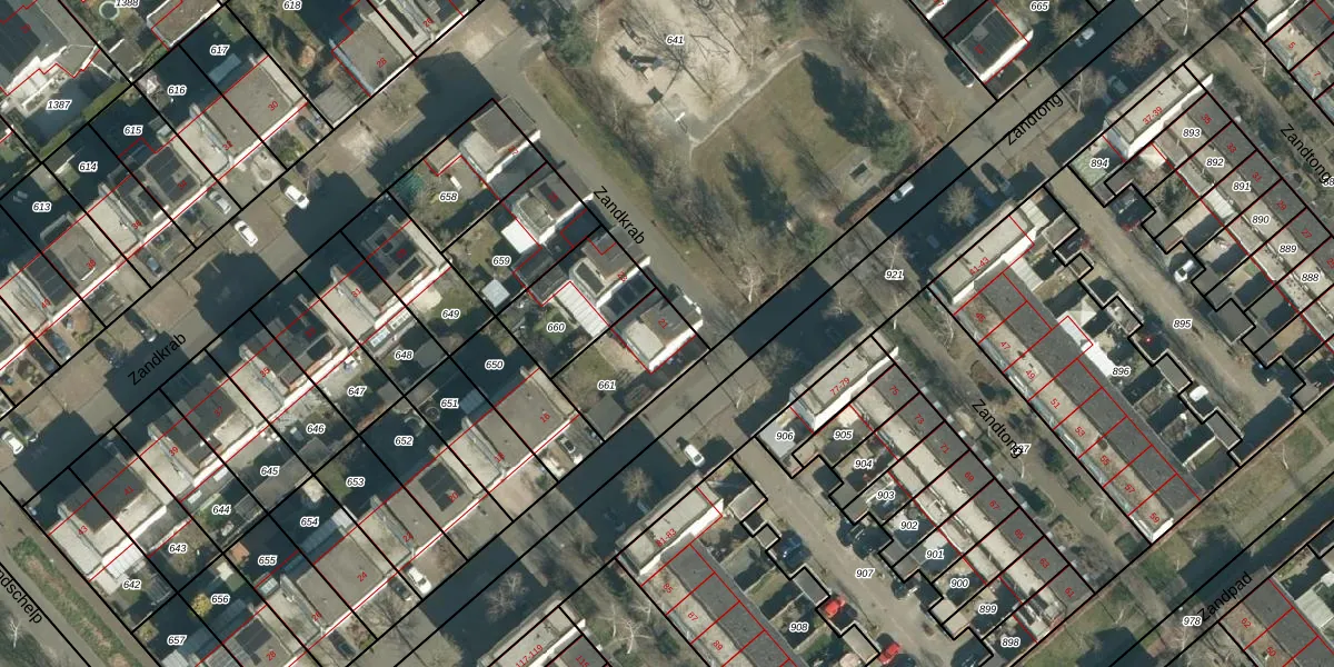 Zandkrab 21 is gelegen op kadastraal perceel STR03F661. Deze kadastrale aanduiding is uniek en wordt gebruikt door het Kadaster om eigendomsrechten en andere zakelijke rechten vast te leggen. Het perceel maakt onderdeel uit van de kadastrale gemeente Strijp.