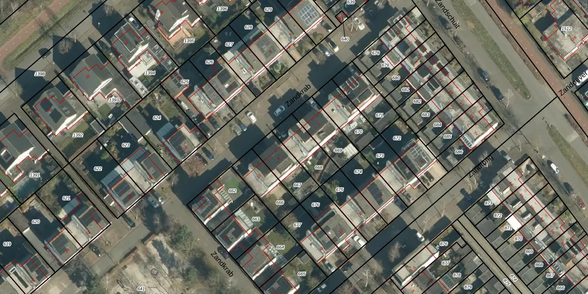 Gebruik de zoekbalk of klik op een perceel voor informatie over de adressen binnen dit perceel.