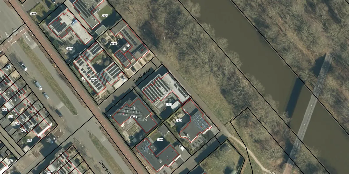 Zandoever 9 is gelegen op kadastraal perceel STR03F1521. Deze kadastrale aanduiding is uniek en wordt gebruikt door het Kadaster om eigendomsrechten en andere zakelijke rechten vast te leggen. Het perceel maakt onderdeel uit van de kadastrale gemeente Strijp.