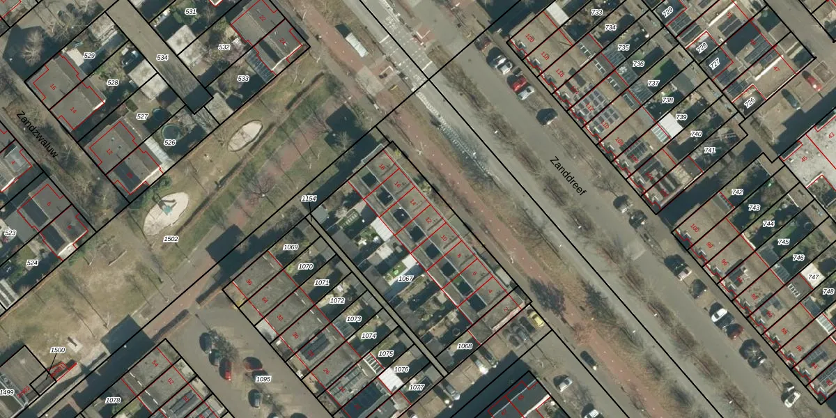 Het perceel waarop Zandroos 14 staat heeft een oppervlakte van 1203 m². Dit is een zeer groot perceel. De perceeloppervlakte wordt geregistreerd door het Kadaster. Gedetailleerde informatie over de maten van dit perceel kunt u vinden in het rapport Kadastrale kaart met maatvoering van Zandroos 14.